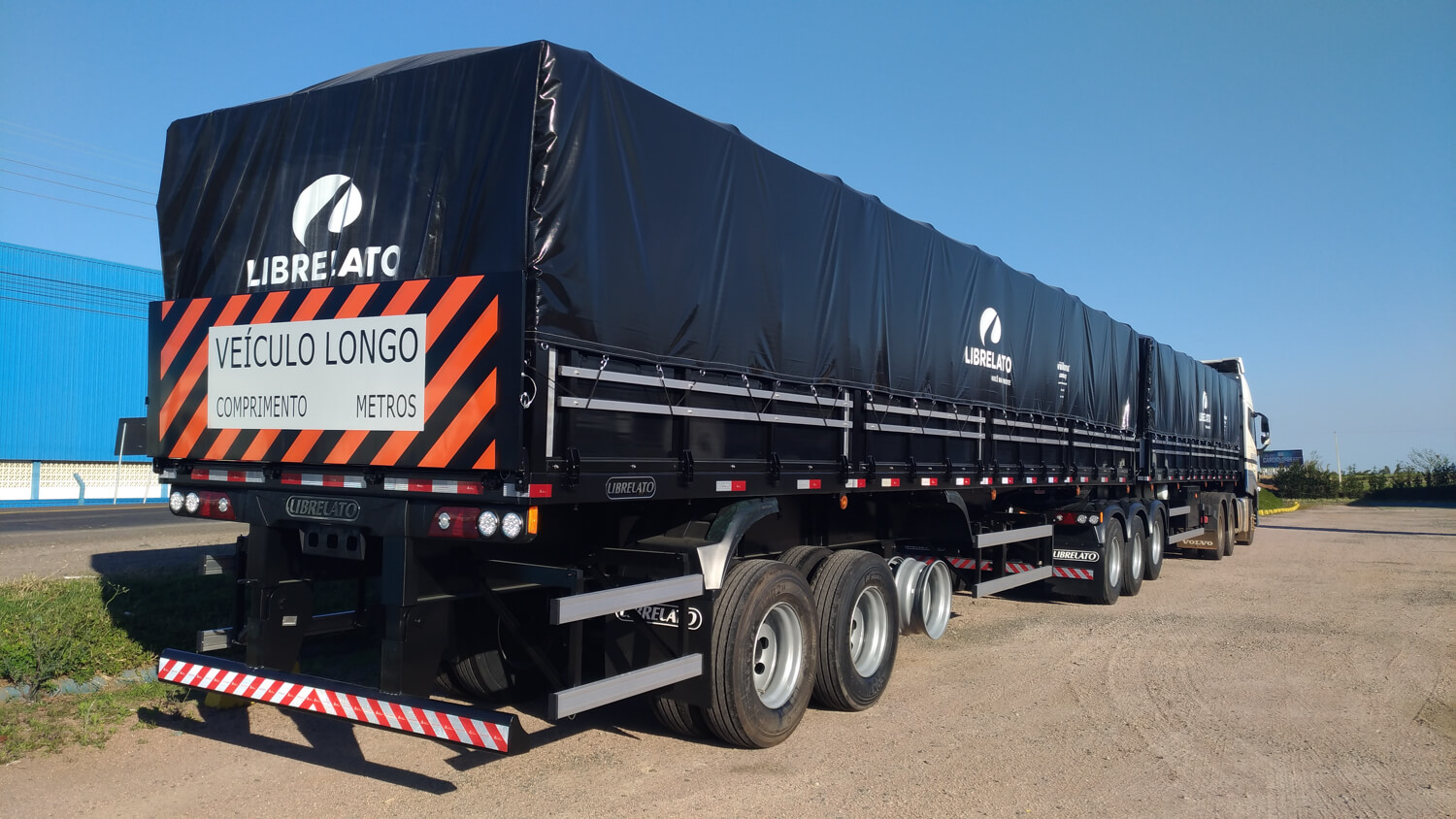 A carreta dolly também é articulada e fica acoplada na segunda carreta tem 2 eixos e é engatada na quinta roda na parte de trás da primeira carreta.