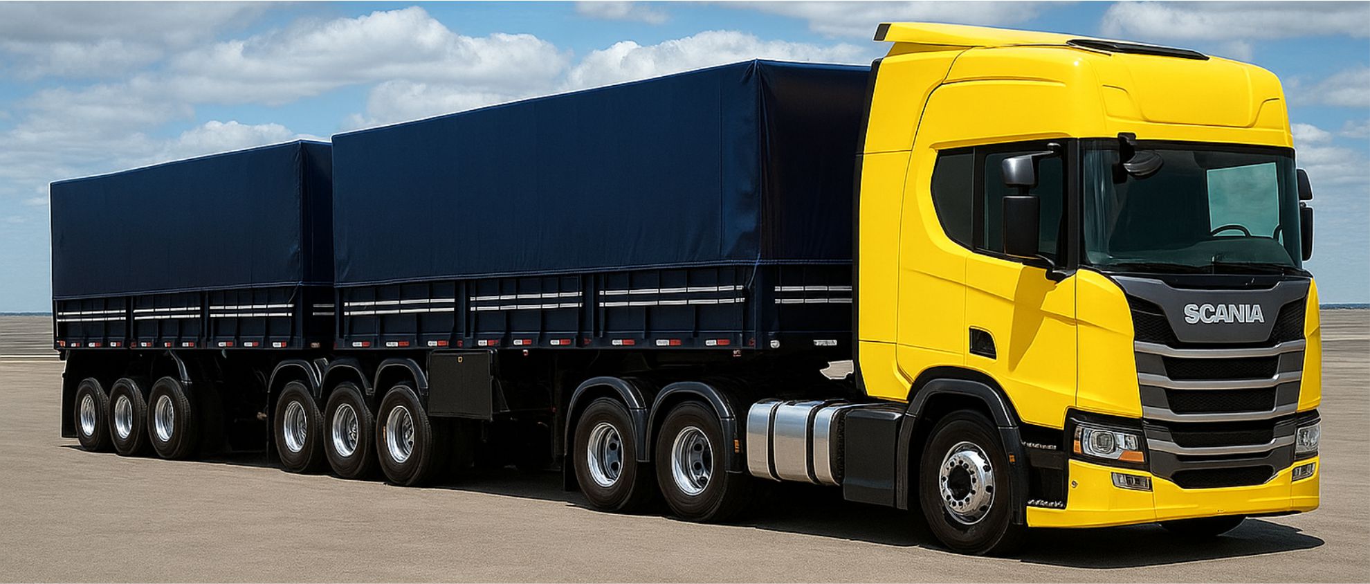 Portanto, o rodotrem é um caminhão onde o cavalinho é traçado (3 eixos), engatado em 2 semirreboques com 2 eixos cada, e um dolly com mais 2, totalizando 9 eixos o conjunto completo.